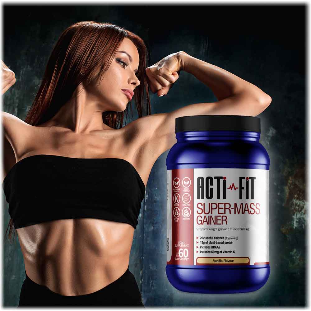 Achieving the size gains you want can be tough if you exercise heavily. Rather than reaching for calorific junk food that is devoid of useful calories, Acti-Fit Super-Mass Gainer provides useful calories from plant protein and carbohydrates.