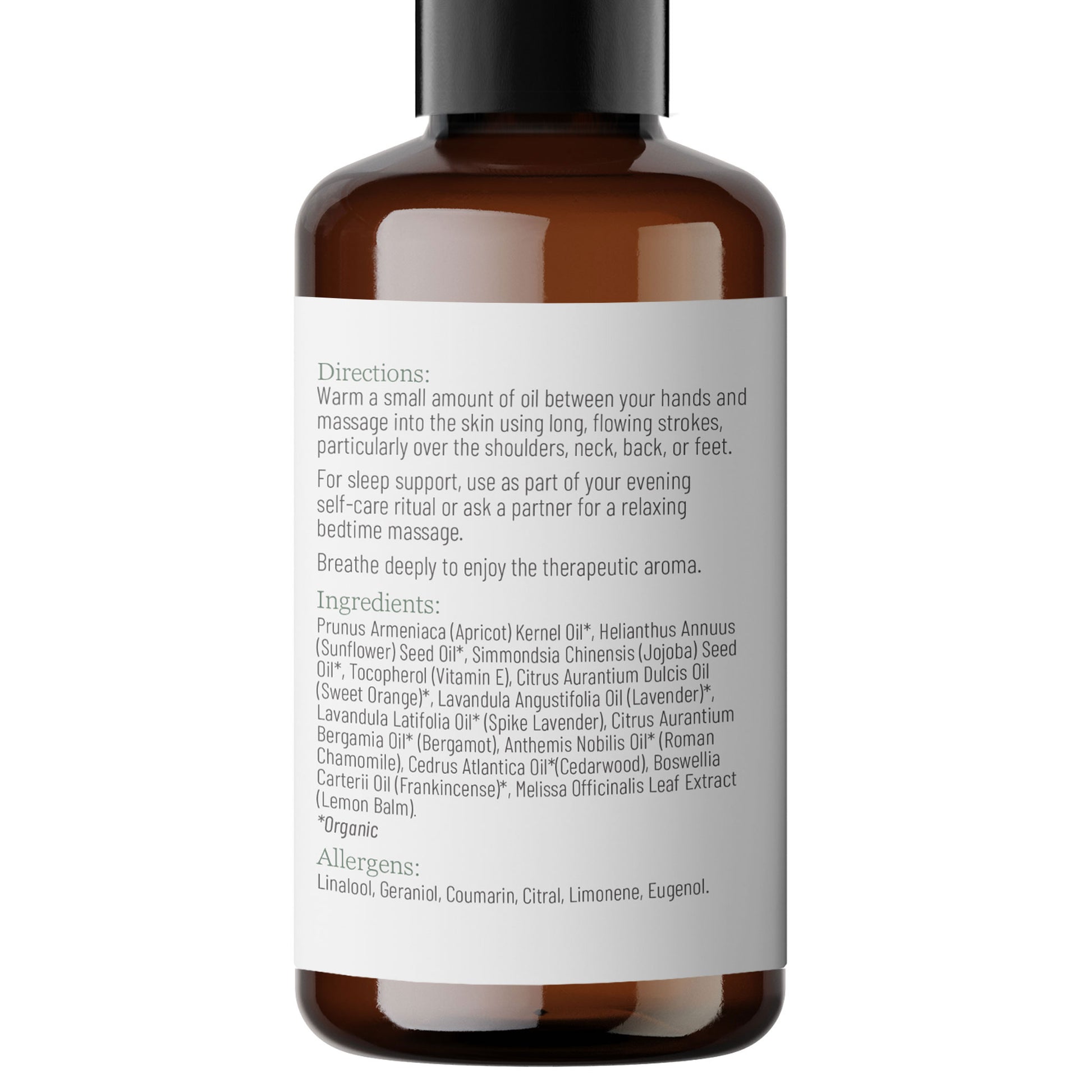 A clinically designed aromatherapeutic massage oil formulated to support deep, restorative sleep and relaxation.
